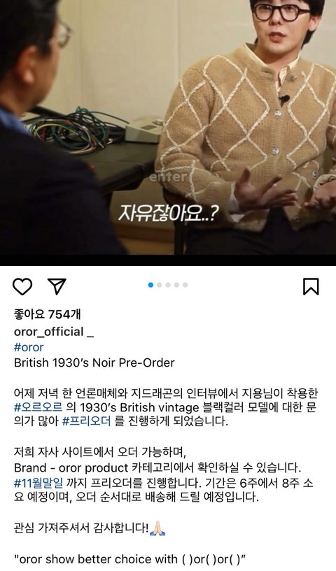 은 바로 지디가 인터뷰할때 썼던 안경 브랜드랑 자진출석 할때 입었던 셋업 브랜드