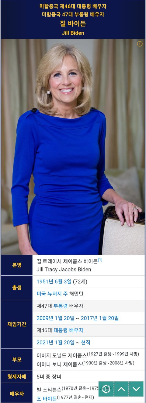 (사진4 설명) 영부인 질 바이든(Jill Biden) 여사 <출처 : 네이버 나무위키>