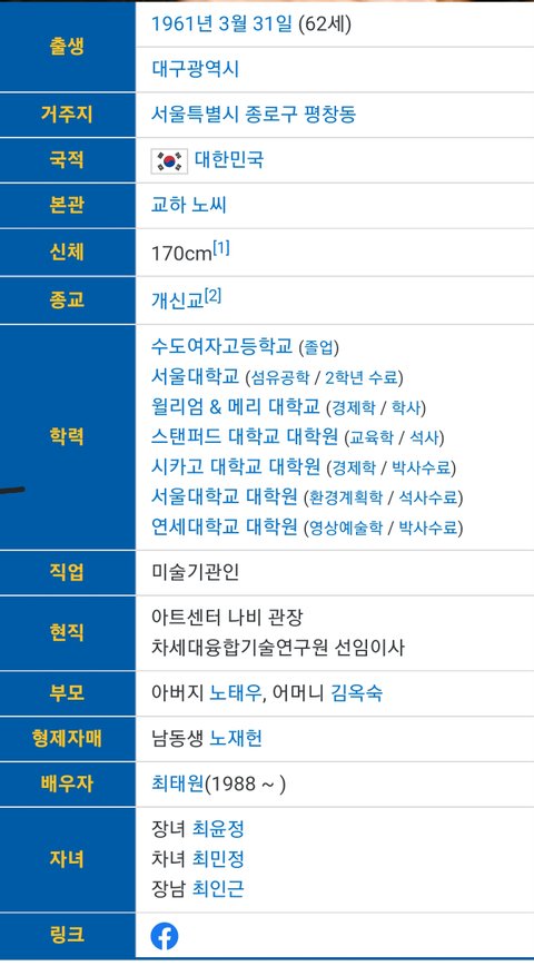 (사진9~10 설명) 노소영(盧素英, Roh Soh-yeong) 아트센터 나비 관장 <출처 : 네이버 나무위키>