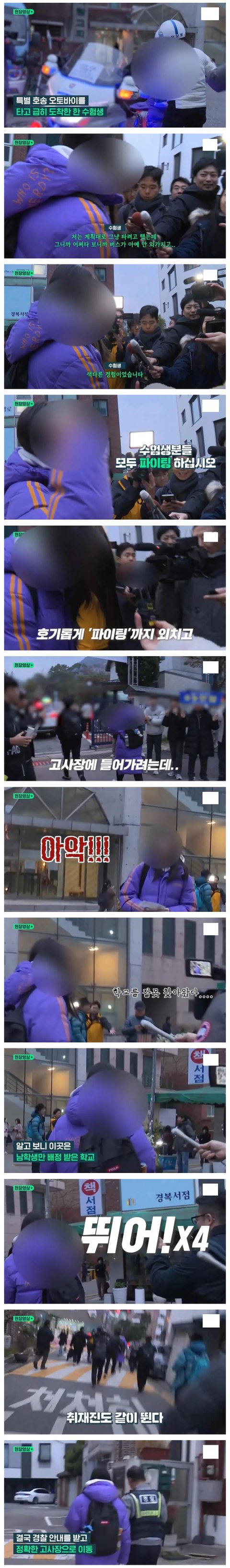 이런일 하나에 진지빨고 한소리해야 직성이 풀리냐 쟤가 보는 것도 아닌데 진짜 피곤하게도 산다 수능에 올인하는애가 맞든 아니든 경찰은 이미 배치되어있고 저런거 도와주려고 차타고 돌아다니는 사람도 있는데 마음좀 곱게 쓰자 영어듣기 하나로 비행기까지 하늘위에서 대기하게 만들만큼 중요한 시험인데 경찰배치를 아예 없앨꺼야 어쩔꺼야 그냥 귀엽게 보고 웃고 너어가든가 걍 무시하면될껄 한심이니 어쩌니.. 본인들 인생이나 챙기세요