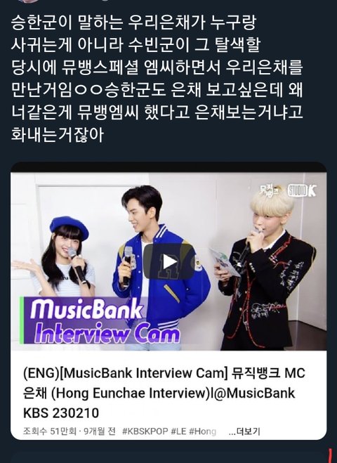 루머유포 홍승한이 팬이라 스페셜엠씨한거 부럽단거겠지 이때 은채 인터뷰함