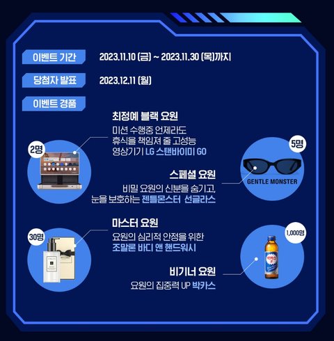 빈칸 글씨 따라 쓰기만 하면 돼서 이벤트 응모하는 데 10초도 안 걸리는데당첨되면 LG 스탠바이미 GO 부터젠틀몬스터 선글라스, 조말론 바디워시박카스까지 1,000명 넘게 경품 준대요