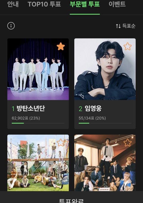 아니 근데 투표 지금 아티스트 부분 1위가 방탄인데
