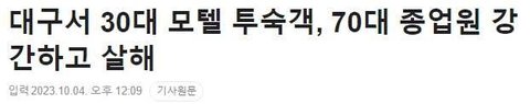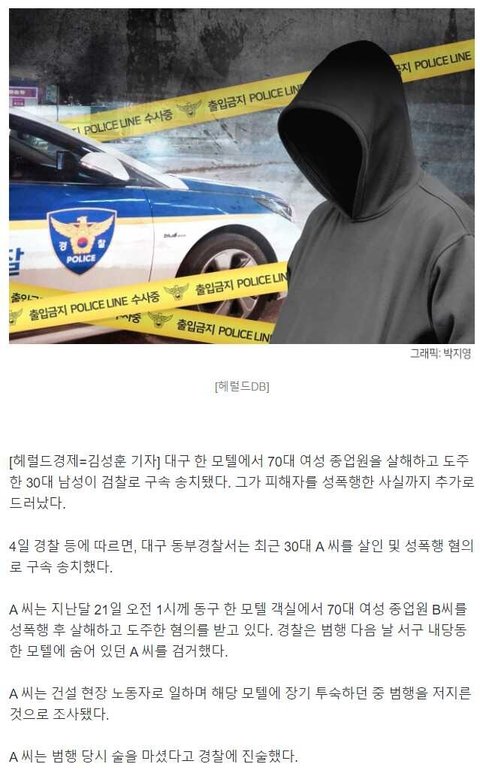 대구서 30대 모텔 투숙객, 70대 종업원 강간하고 살해