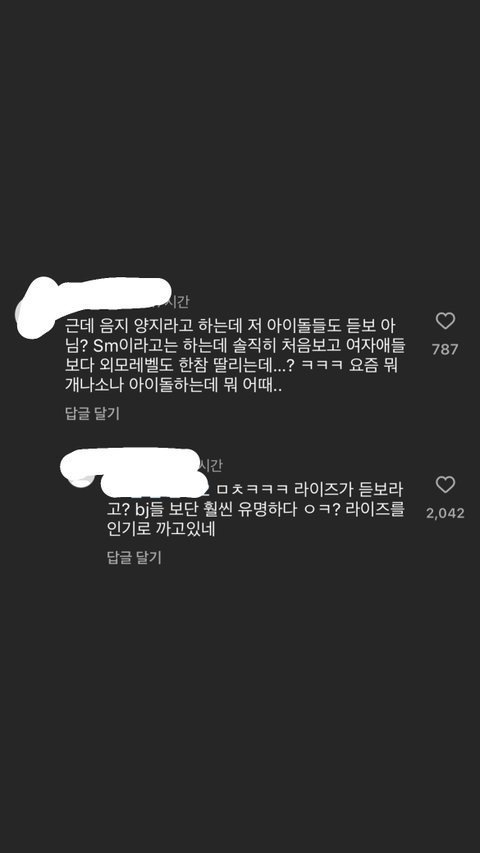 가슴 자랑하던 여캠들 모아서 밴드 만든 거랑 연습생 생활 다 거치고 데뷔한 애들이 같나… 난 이해가 안 감