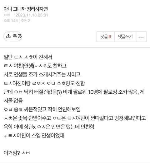 ㅌㅅ여친이랑은 걍 스엠 전연생이라 친한거고