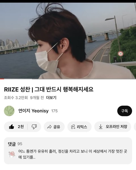 영상이랑 노래랑 댓글 다 따수워서 자주 보던 영상인데… 지금 상황에서 보니까 가슴 미어 터짐 성찬아 내가 너 한번 사랑한다