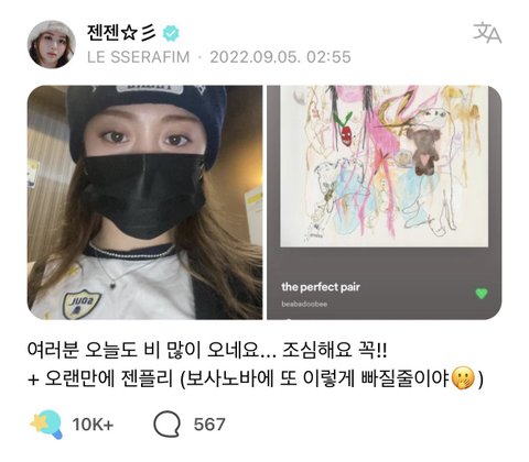 진짜 옘병을 하노 김채원도 저 노래 좋다고 올렸었는데 그룹내 연애냐 그러면? 미친련