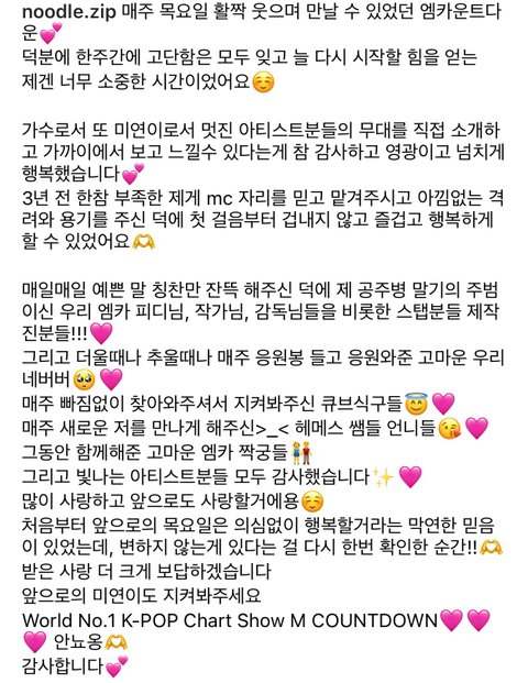 엠카운트다운 전 제작진 분들도 오시고 20년도에 찍은 미연이 웹드 제작진분도 오시고 사녹 할 때도 이벤트 준비해주시고 생방 때도 준비해주셨는데 인터뷰할때도 멘트까지 다 짜주시고 타 아티스트분들이 미여니한테 꽃 주는 거 너무 감덩