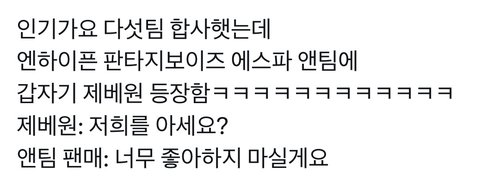 근데 그런 모습 가식이라도 안 보여주면 처 맞는게 아이돌임 어차피 유사는 자기 만족이지 진지하게 받아들이는 팬 있음?