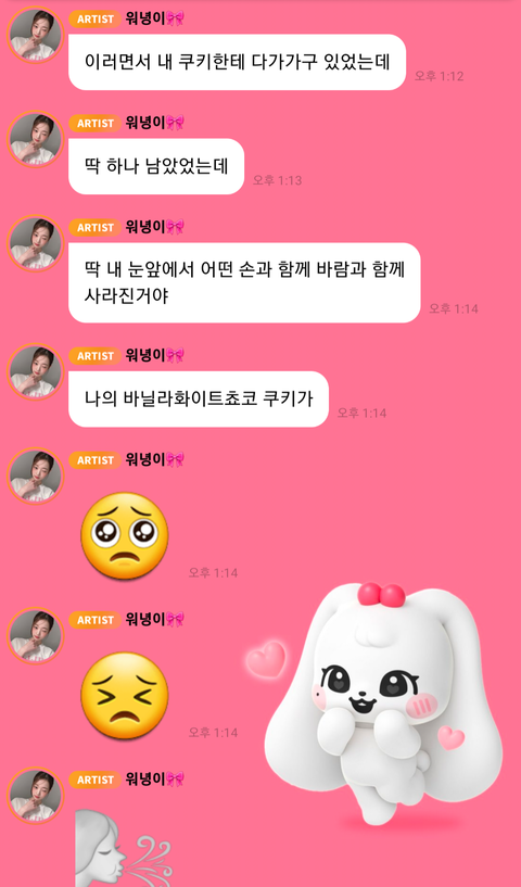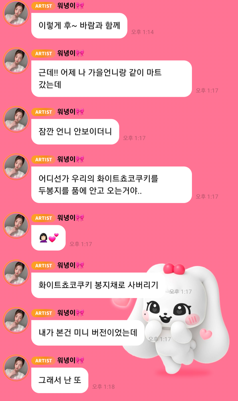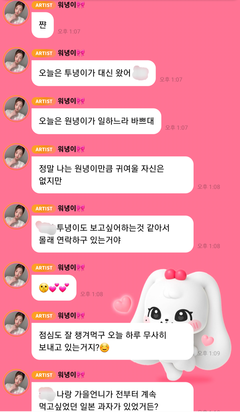 말투며 소소한 내용이며 왜케 귀여움? 이맛에 버블들 하는구나 ㅋㅋㅋ 장원영 쟤는 진짜 아이돌즐기는 타입같아 잘한다