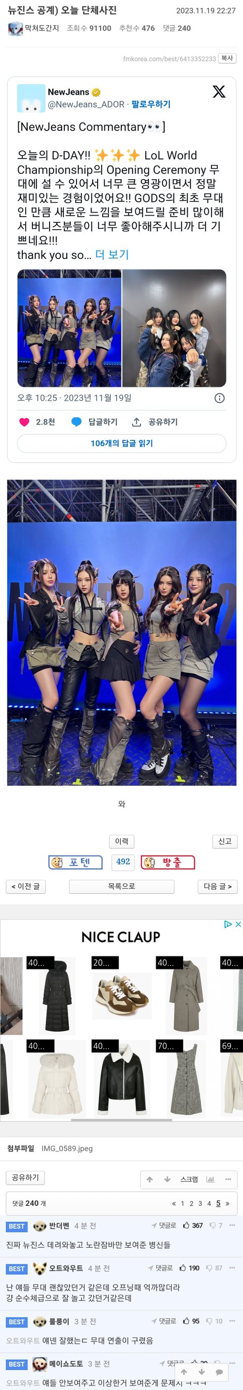 방금 뜬 뉴진스 리그오브레전드 라이브 무대