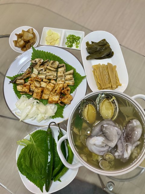 1) 장어구이&낙지연포탕 (둘다 몸이 너무 안좋아서 몸보신 했답니당 ㅠ)▶연포탕 육수는 멸치다시마육수에 다진마늘1, 국간장2 넣어서 만들었어요!무를 넣어서 끓여주면 더 시원한 맛이 나요~