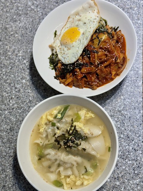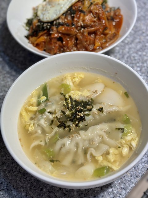 4) 떡만두국&오징어덮밥▶떡만두국을 사골육수로 사용하실 경우 (멸치액젓1, 국간장1, 간마늘 0.5, 후추톡톡) 밑간하고 만두와 떡을 넣고 계란물 풀어주시면 맛있어요!