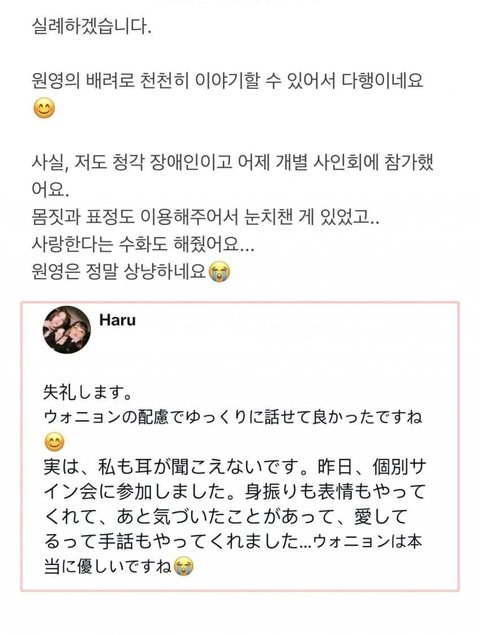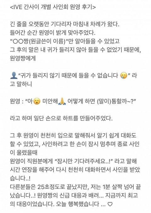 아이브 일본팬사인회에 청각장애인 팬이왔는데...
