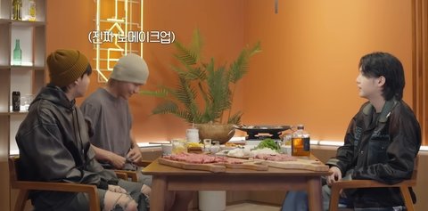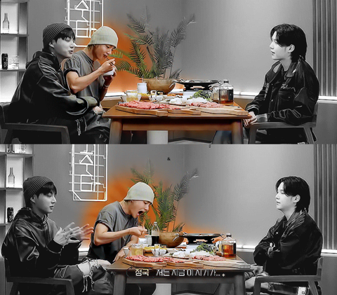 슈취타에서 정국과 슈가가 대화 중