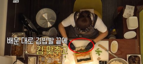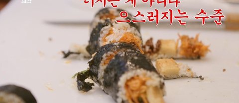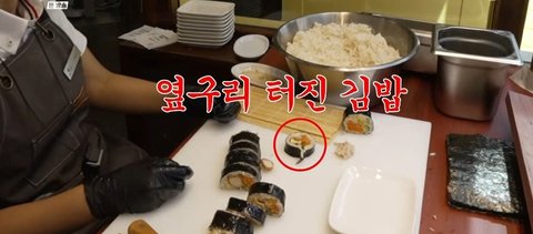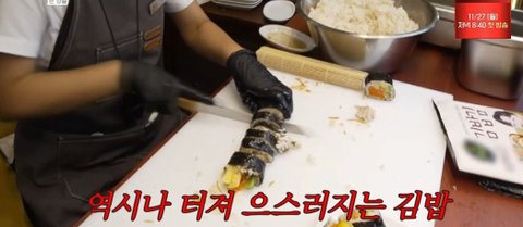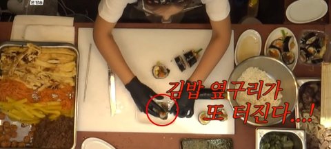 김밥 잘 싸다가 갑자기 옆구리가 터지기 시작함