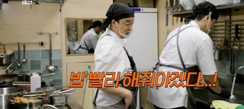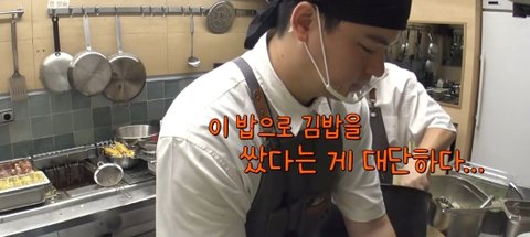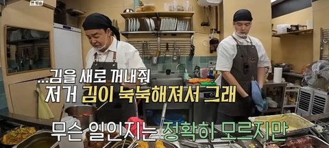 계속 김밥이 밀리자 주방에도 소식이 전해지고