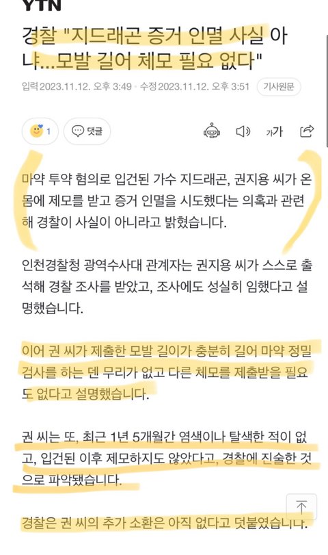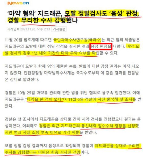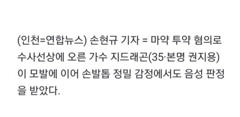 >>지디 손발톱모발 정밀 싹다 음성이래