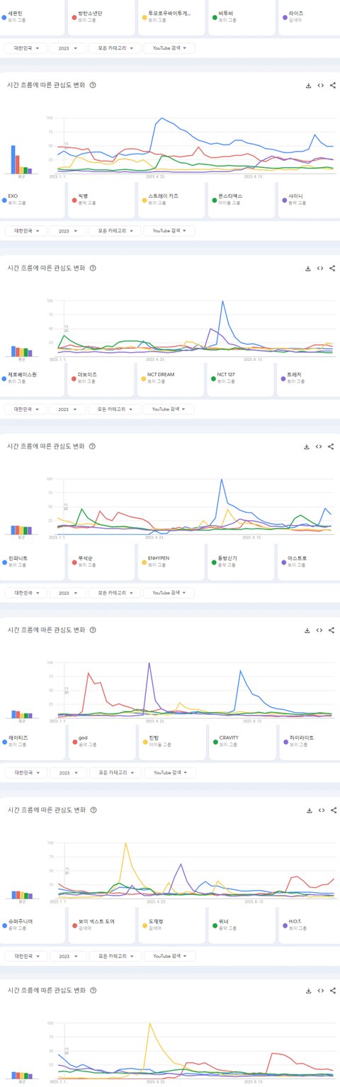 2023년 한국 유튜브에서 가장 많이 검색된 케이팝 남자아이돌그룹 TOP30