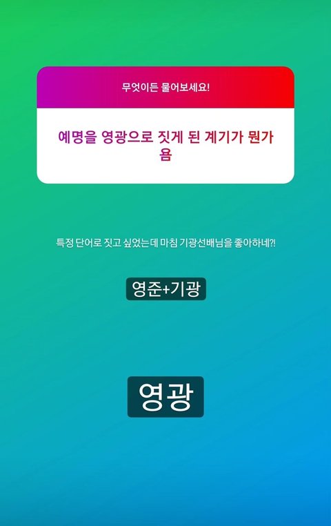 예명 : [영]준+기[광] = 영광