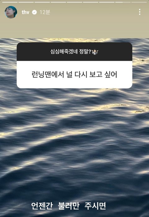 뷔 무물하다 런닝맨에서 다시 보고싶단 팬한테 한 답 봐봐