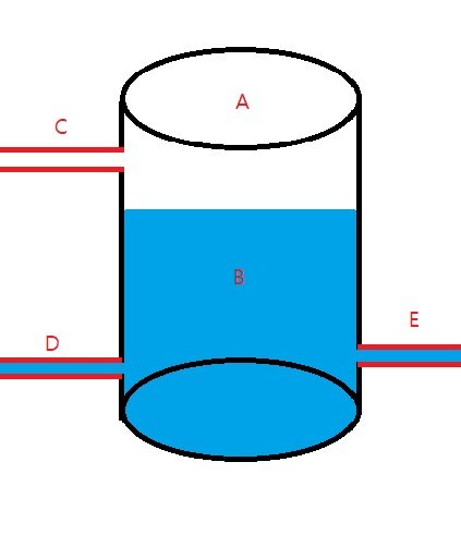 A에 뚜겅을 씌워놓고, 내부를 진공상태로 만들어서, 역류를 방지하고, 더 많은 양의 물을 저장할수있도록