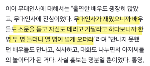 출연 배우들이 온 거 아니냐며 농담삼아 얘기했는데....
