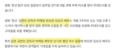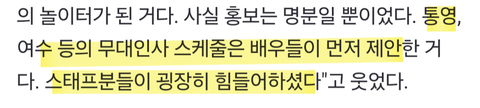 급기야 통영, 여수 (영화의 배경) 무대인사도 하자고 배우들이 먼저 제안함ㅋㅋㅋ