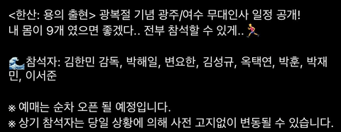 보통 무대인사 공지에서 '인원변동 될 수 있음'은 사정상 참석못한다는 뜻인데