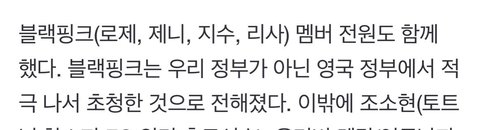 오늘 블랙핑크 영국 정부에 의해 적극 초청 받아 영국 버킹엄궁 국빈 방문 행사에 참석함