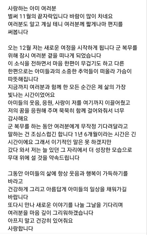 그리고 함께 입대하는 남준 지민 태형이도 모두 건강히 잘 다녀오고 2025년에 만나자
