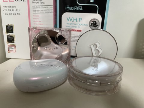 클리오 하이글로우 쿠션-여기 중에서 제일 자주 사용한 쿠션임 밀착력이 없지만 밀어바르면 괜찮음 광이 제일 많은데 과한 느낌 없이 예쁜 광이고 클리오 특유의 다크닝도 안느껴져서 좋았음