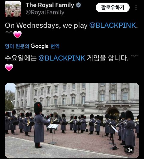 블핑 오늘 버킹엄궁 국빈 행사 참석했다고 연주해주는 건가ㅋㅋㅋㅋㅋㅋㅋ 영국 정부 적극 초청에 군악대 연주까지 대우 대박ㅋㅋㅋㅋㅋ