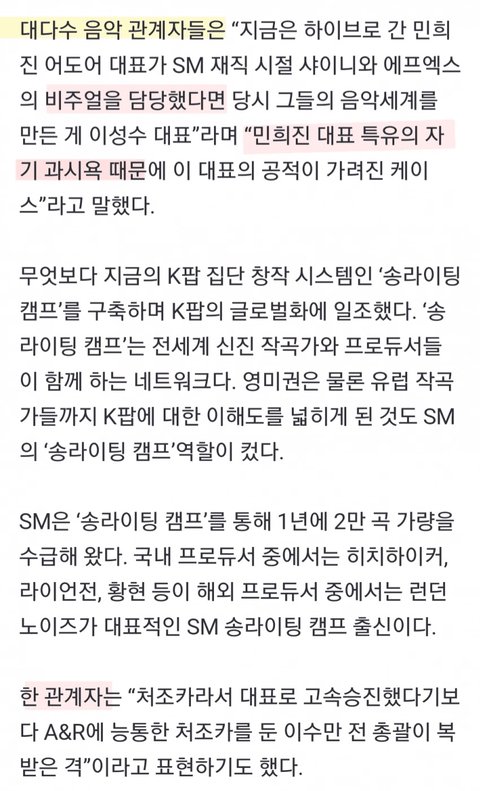 sm경영진들때문에 민희진이 많이힘들었겠네..