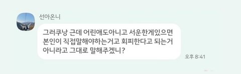 이렇게 카톡이 왔더라고 내가 그거 보고 화나서 난생 처음으로