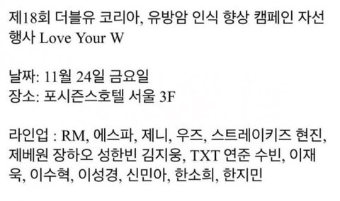 와 내일 더블유 코리아 행사 라인업 봐