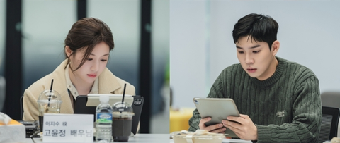 김지훈은 원작 웹툰에는 없는 박태우 역으로 대본리딩 현장에 긴장감을 불어넣었고 이지수 역의 고윤정은 차분한 저음으로 대사 속에 숨겨진 메시지를 전달했다.