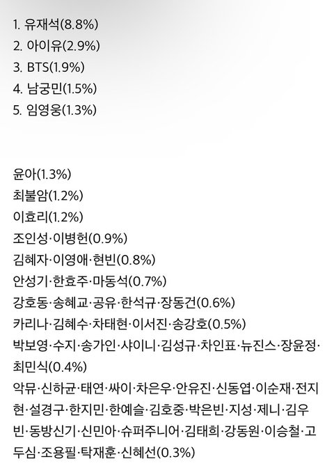 2023년 한국인이 가장 좋아하는 연예인 설문조사