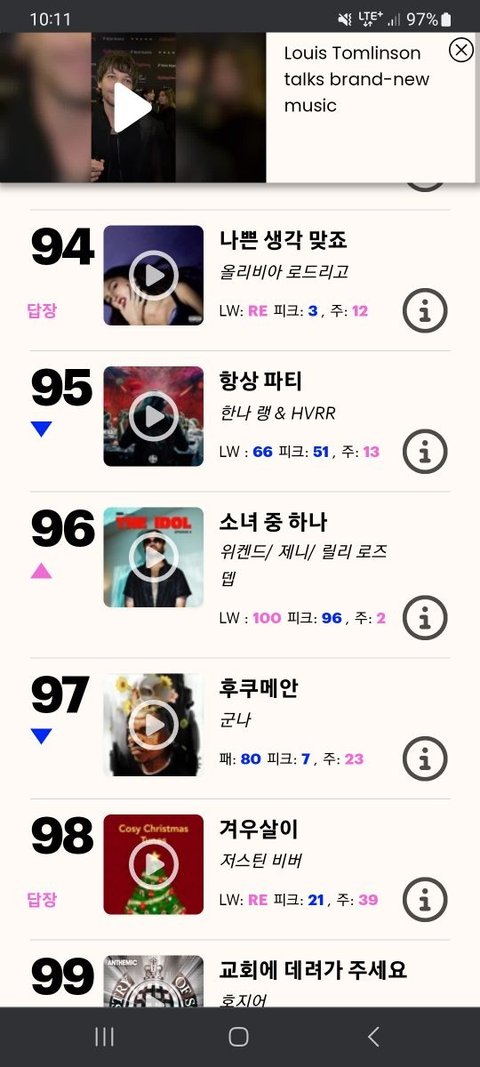 이번주에 96위로 올라옴