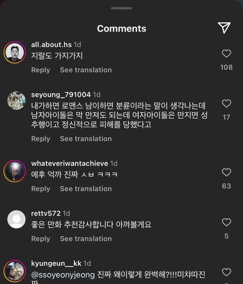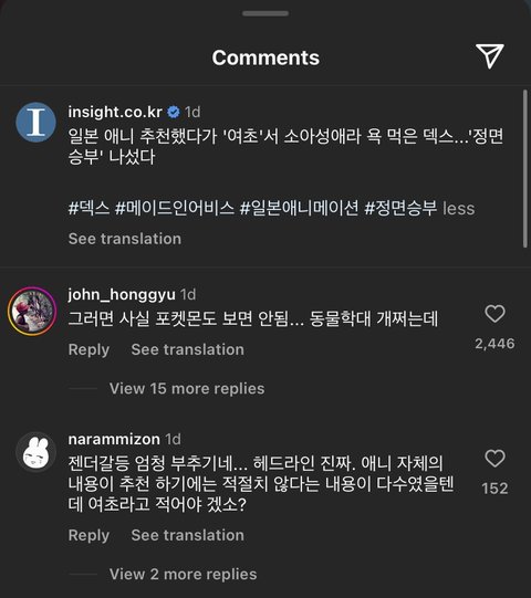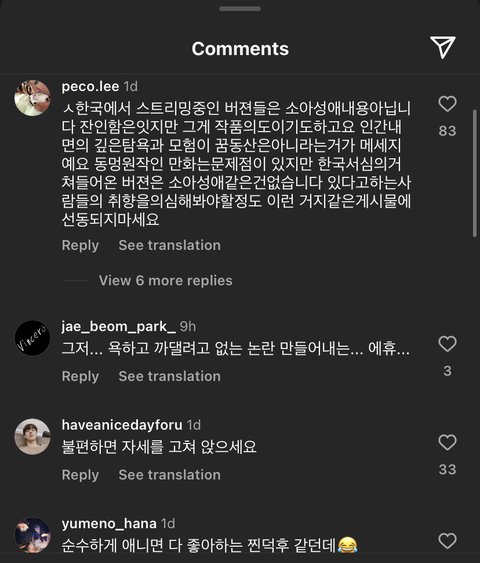 ㅁㄷ 그럼 저 많은 좋아요가 메인어 팬이라고? 그럼 니 말대로면 자기가 소아성애만화 팬이라고 신상 다 드러나는 공개적인 인스타 드러내고 있다는 건데 말이 됨? 니 말이 모순임 저 애니가 소아성애 만화가 아니니까 자기가 팬이라고 드러낼 수 있거나 아님 저 사람들이 팬이 아니라 대중이거나