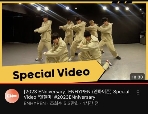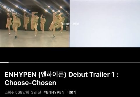 3년 전 데뷔 트레일러에 정말 짧게 연습 영상 올렸었음 (1초) 팬들은 엔하이픈 기념일마다 왜 영상 안푸냐고 화냈었는데