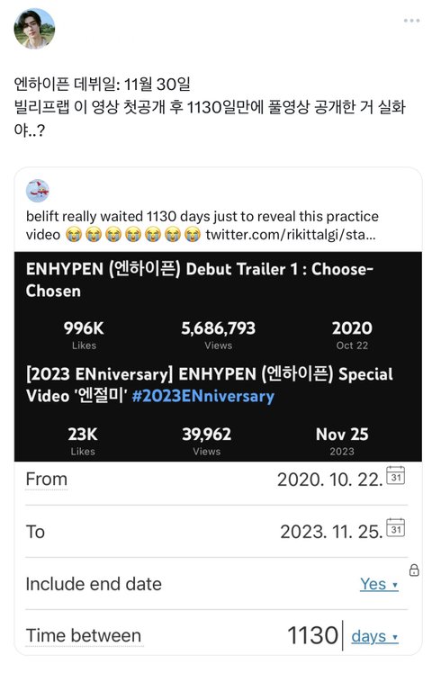 데뷔 트레일러에 잠깐 나온 저 영상 지금 푼 이유 : 엔하이픈 데뷔일을 상징하는 1130일 후에 올리기 위해 존버했던거임