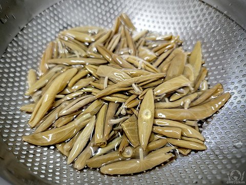인터넷으로 주문한 순채. 요리법을 찾아보니 요리하기 전에 살짝 물에 씻어서 살짝 데쳐야 한다고 나와있습니다.