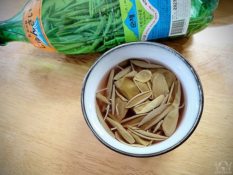 하지만 조금이라도 빨리 그 맛을 즐기려는 급한 마음에 우선 순채차를 타서 마셔보기로 합니다.