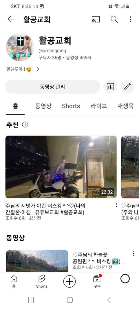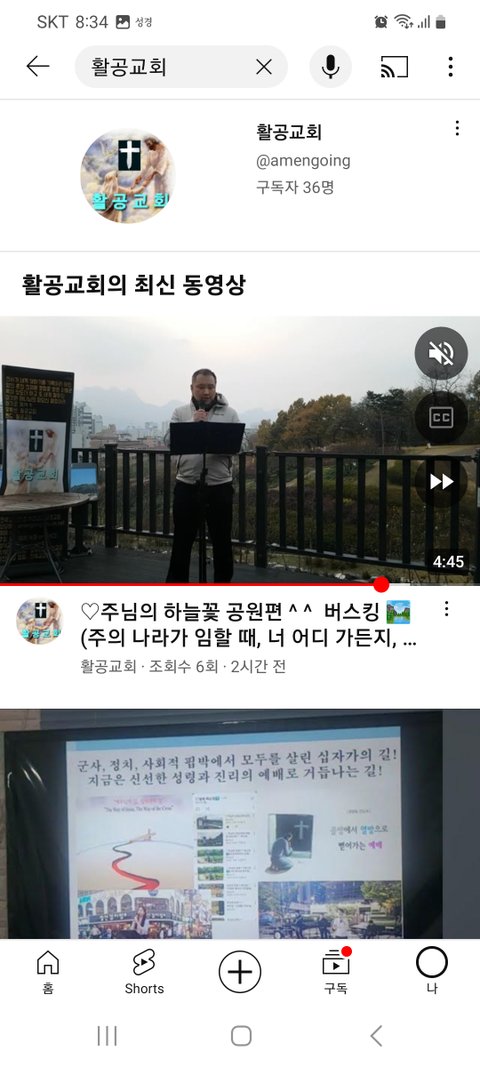 유튜브 검색에 활공교회를 치고