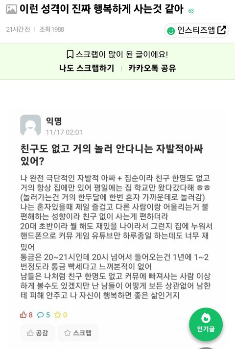 인싸보다 자발적 아싸들이 훨씬 밝고 멘탈 강한것 같음
