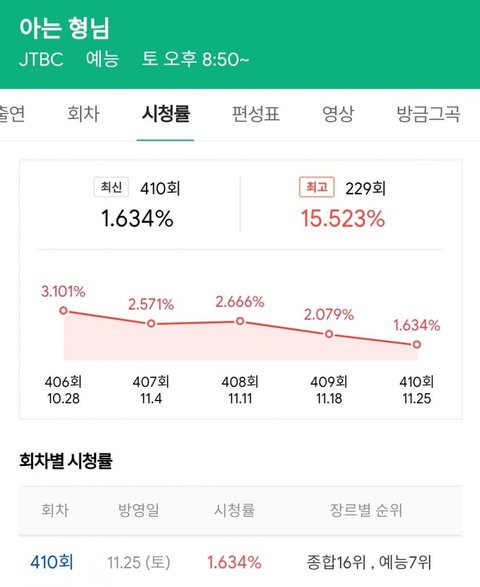 그냥 아는형님 프로그램 자체가 화제성이 점점 식은거지 요즘 솔직히 아는형님 누가 본다고 ㅋㅋㅋㅋ