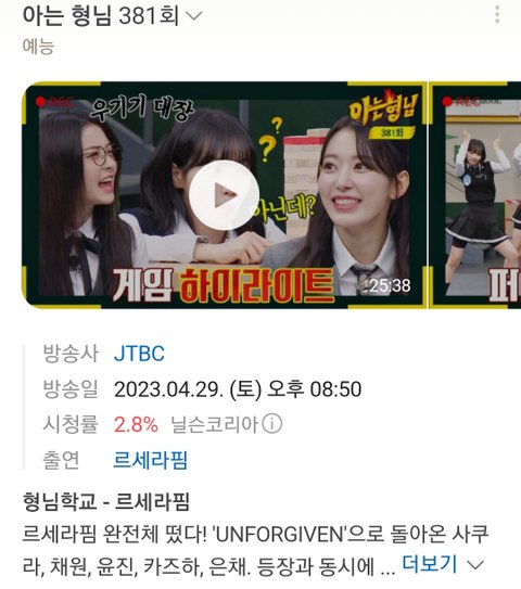 참고로 올해 걸그룹 최고 시청률은 르세라핌임