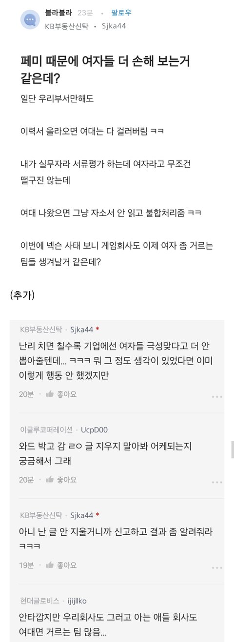 여대생들이 페미라서 안뽑는다구?